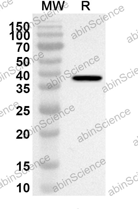 Western blot analysis was performed using anti-FGF16 polyclonal antibody at 1ug/mL on recombinant FGF16 (Catalog No. HT461012). |