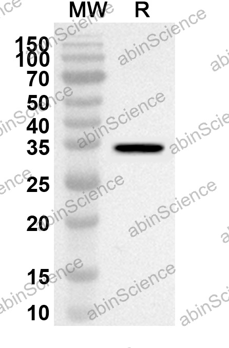 Western blot analysis was performed using anti-Polyprotein pp62/Ba71V-94/ASFV-p35 polyclonal antibody at 1ug/mL on recombinant Polyprotein pp62/Ba71V-94/ASFV-p35 (Catalog No. VK628022). |