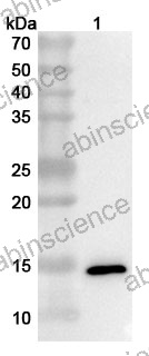 Western blot analysis was performed using anti-A33R polyclonal antibody at 1ug/mL on various samples. Lane 1: recombinant Monkeypox virus/MPXV A33R (Catalog No: VK469012)