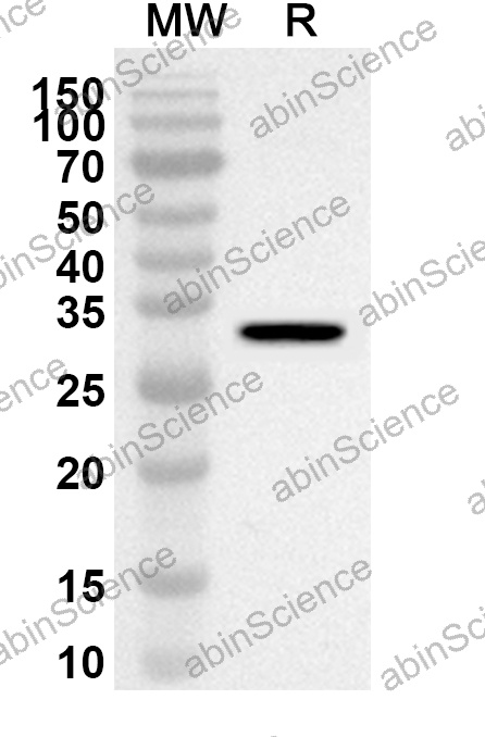 Western blot analysis was performed using anti-SARS-CoV-2 ORF10 polyclonal antibody at 1ug/mL on recombinant SARS-CoV-2 ORF10 (Catalog No. VK615012). |