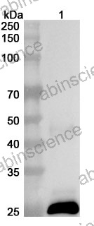 Western blot analysis was performed using anti-Lassa virus/LASV GPC polyclonal antibody at 1ug/mL on recombinant Lassa virus/LASV GPC (Catalog No. VK453012). |