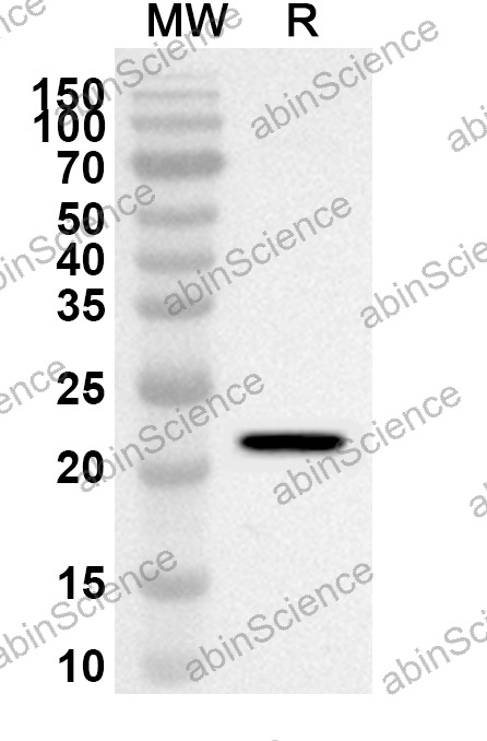 Western blot analysis was performed using anti-Treponema pallidum TPF1/Antigen 4D polyclonal antibody at 1ug/mL on recombinant Treponema pallidum TPF1/Antigen 4D (Catalog No. JN906012). |