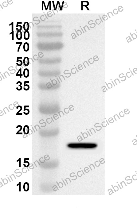 Western blot analysis was performed using anti-BMP8A polyclonal antibody at 1ug/mL on recombinant BMP8A (Catalog No. HV043012). |