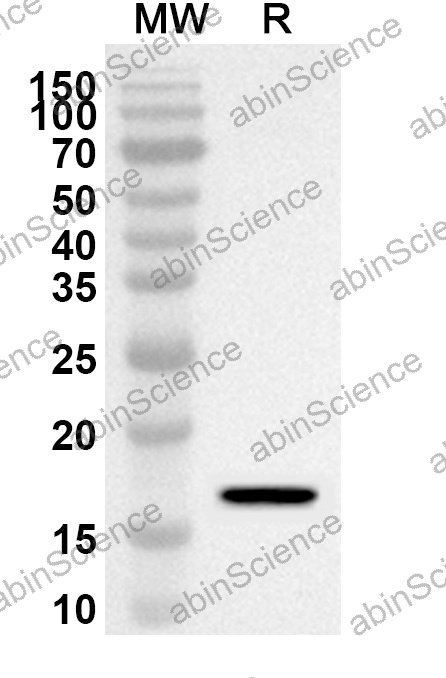 Western blot analysis was performed using anti-Mouse CD268/TNFRSF13C polyclonal antibody at 1ug/mL on recombinant Mouse CD268/TNFRSF13C (Catalog No. MV599012). |