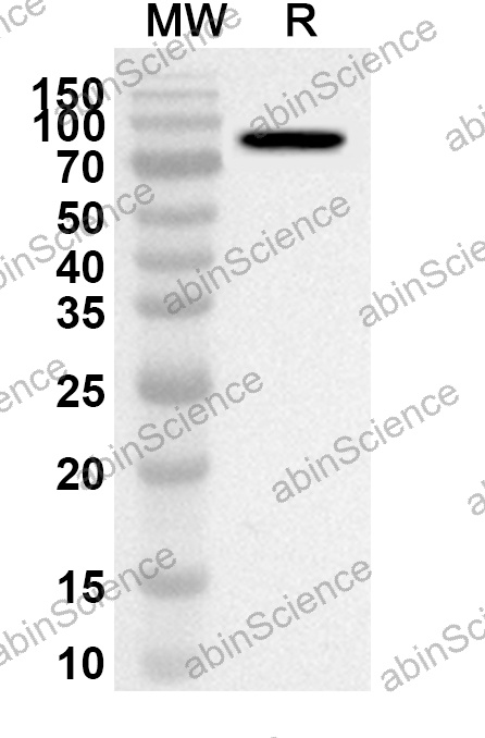 Western blot analysis was performed using anti-MARV NP/Nucleoprotein polyclonal antibody at 1ug/mL on recombinant MARV NP/Nucleoprotein (Catalog No. VK660012). |