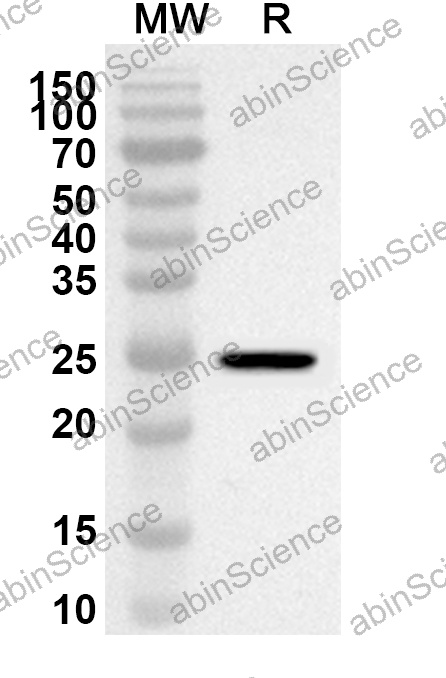 Western blot analysis was performed using anti-European house dust mite DERP7/Der p 7 polyclonal antibody at 1ug/mL on recombinant European house dust mite DERP7/Der p 7 (Catalog No. JN924012). |