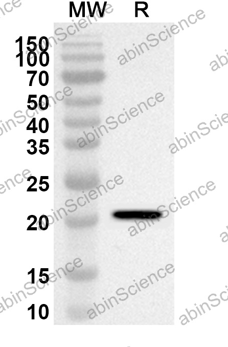 Western blot analysis was performed using anti-European alder Aln g 1 polyclonal antibody at 1ug/mL on recombinant European alder Aln g 1 (Catalog No. PR118012). |
