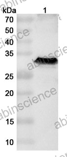 Western blot analysis was performed using anti-HA-H18N11 polyclonal antibody at 1ug/mL on various samples. Lane 1: recombinant Influenza A virus (H18N11) HA/Hemagglutinin (Catalog No: VK515072)