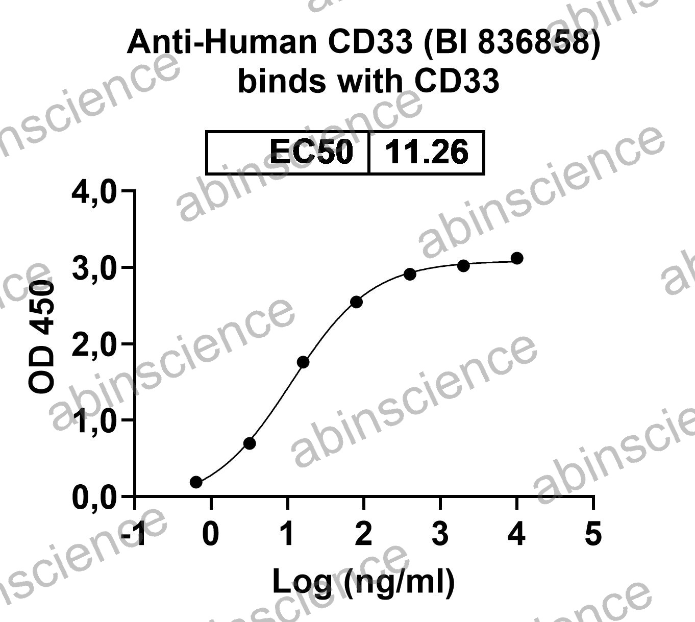 Detects recombinant human CD33 (Catalog No: HB185011) in indirect ELISA |