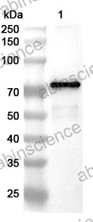 Western blot analysis was performed using anti-RctB polyclonal antibody at 1ug/mL on various samples. Lane 1: recombinant Vibrio cholerae serotype O1 RctB (Catalog No: JN004012)