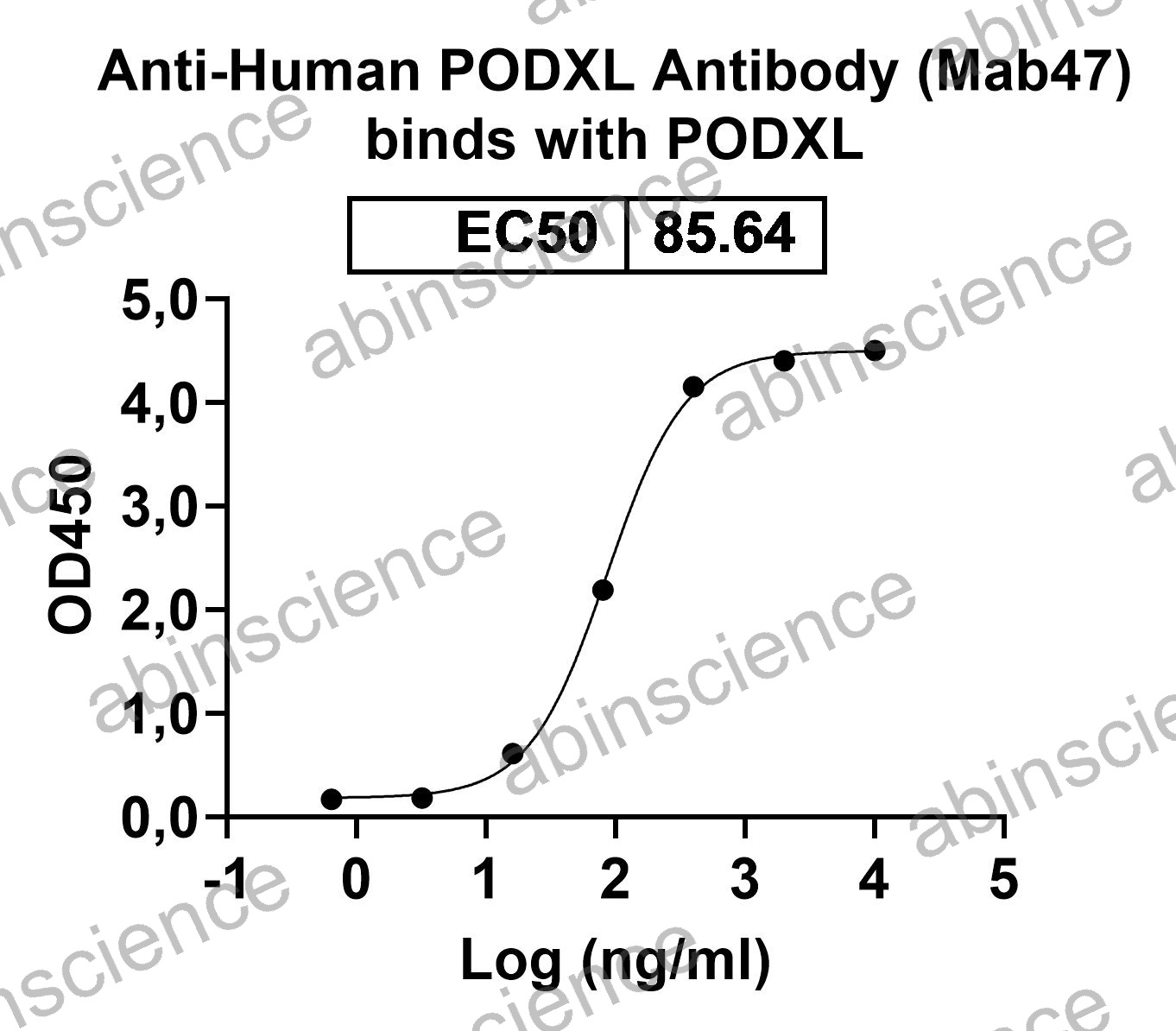 Detects recombinant human PODXL (Cat No.: HT033012) in indirect ELISA. |