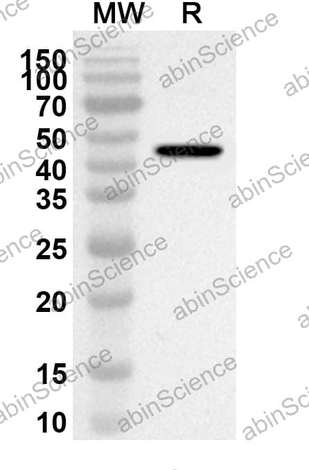 Western blot analysis was performed using anti-DDOST polyclonal antibody at 1ug/mL on recombinant DDOST (Catalog No. HW572012). |