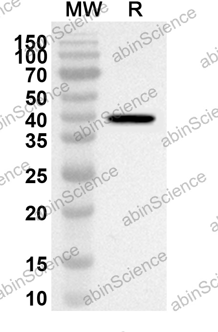 Western blot analysis was performed using anti-KRT6C polyclonal antibody at 1ug/mL on recombinant KRT6C (Catalog No. HW424012). |